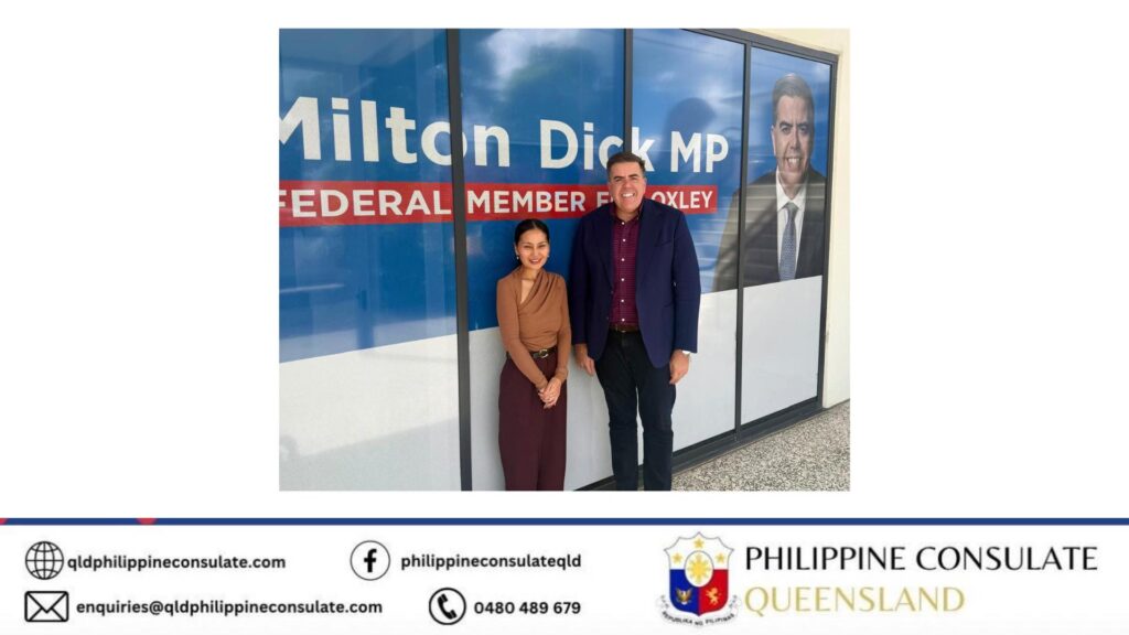A productive courtesy meeting was held last Friday, 20 March 2026 between Consul Sheryll Gabutero and The Honourable Milton Dick MP, Speaker of the House of Representatives at his office in Richlands. Discussions highlighted the strong and growing Filipino community in the Oxley electorate (estimated at over 6,000–8,000 residents), and covered key community priorities including […]