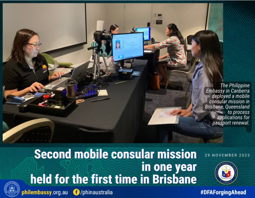 Second mobile consular mission in one year held for the first time in Brisbane CANBERRA, Australia (29 November 2023) – The Embassy of the Philippines in Canberra completed its second mobile consular mission in Brisbane, Queensland on 21 to 24 November 2023. This is the first time that the Embassy held two mobile consular missions […]