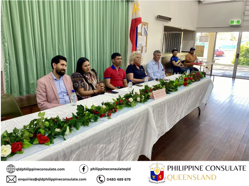 Philippine Consulate Queensland Outreach Mission in Dalby: Led by Philippine Consul Atty. Sheryll Gabutero, with Honorary Consul staff Jesusa Say Pamittan Limpin and Friends of the Consulate Nikki Domingo, Rob Wenceslao, Gilbert Ordiales, Rohit Sharma, and Bob Alipalo, the outreach team connected with the local Filipino community. Accompanied by Queensland Filipino Arts Association Australia (QFAAA) President Gina Luck, Vice President Reena Gabutero-Johnson, and Secretary Josyl Miranda, the mission addressed vital topics such as Filipino workers’ rights, pension access in the Philippines, dual citizenship, and the Balikbayan visa.