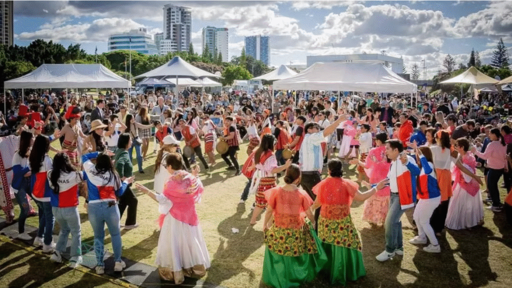 16 June 2024 – Philippine Festival in celebration of Philippine Independence day at Broadwater Parklands, Marine Parade, Southport on the Gold Coast presented by Filipino-Australian Community Gold Coast Inc and organized by the President of the organization, Mary Ann Boehme. Celebration of Filipino culture, with a vibrant array of activities including a mix of traditional Filipino music, dance performances by Fil-Oz dance group and live music by Diamante Band and culinary delights amongst others. The event also included cultural exhibits, arts and craft stalls and activities for families. The day served as a significant event for the Gold Coast Filipino community, with an inspirational speech delivered by Philippine Honorary Consul to Queensland, Sheryll Gabutero alongside State politicians, Member for Surfers Paradise, John-Paul Langbroek (representing Leader of Opposition, David Crisafulli) and Member for Bonney, Sam O’Connor. Also present were several Filipino community leaders including Dixie Morante, President of Filipino Australian Brisbane Society (FABS), Chris Ramos, President of Ilocano Ti Australia Inc, Honey Binny, President of Barrio Fiesta Brisbane, Rafael Toda, President of Australia Philippines Business Council (APBC) and Connie Da Cunha, President of Chamber of Commerce Industry Australia Philippines (CCIAP).